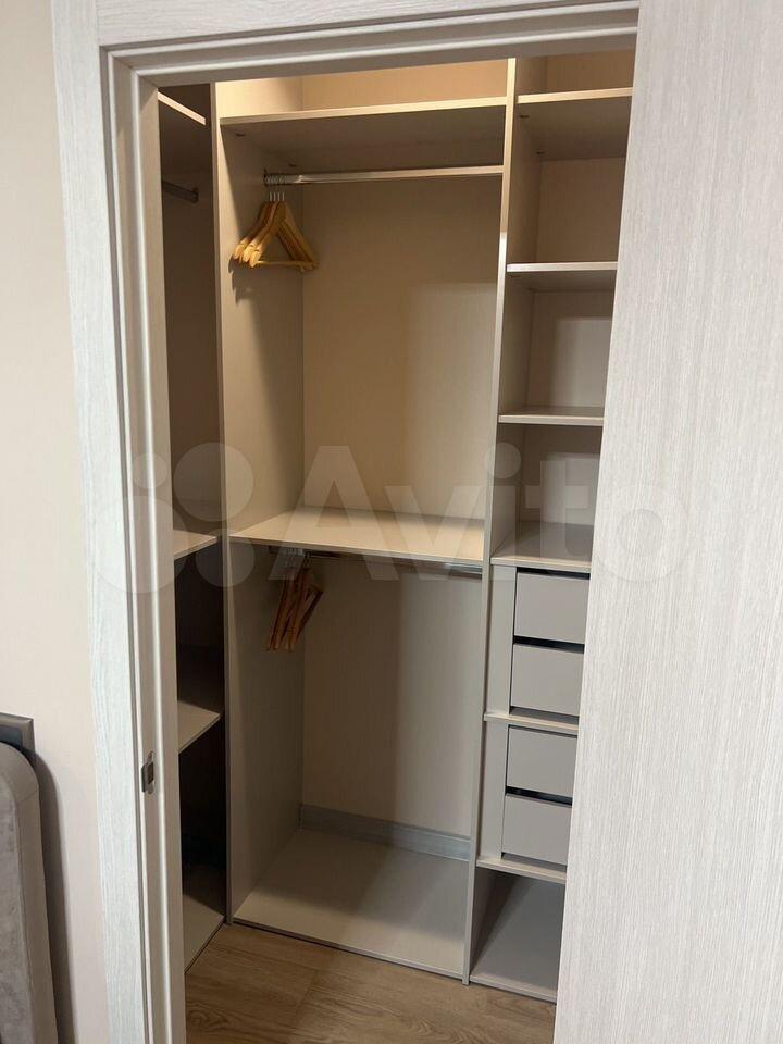 Квартира полностью меблирована и укомплектована необходимой техникой. Предусмотрено достаточно места для хранения личных вещей, в том числе ниши под диваном и кроватью.