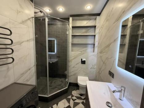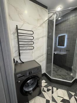 В квартире есть дизайнерский ремонт, мебель в комнате и на кухне. Оснащена всей необходимой техникой: кондиционер, холодильник, посудомоечная машина, телевизор и стиральная машина. В ванной комнате установлена душевая кабина. Во всей квартире теплый пол. На время отключения горячей воды есть мощный водонагреватель.