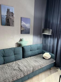 Квартира с большой комнатой с застекленным балконом. Вся необходимая мебель есть. Свежий ремонт. В комнате и мягкий диван, и еще мягкий удобный уголок с модульной мебелью. Холодильник, микроволновка, газовая плита с духовкой, стиральная машина, посудомоечная машина, телевизор, wi-fi.