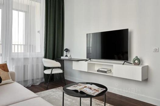 Просторная жилая зона площадью 20 м² оформлена в современном стиле. В квартире есть все необходимое для комфортного проживания: телевизор, стиральная машина с функцией сушки белья, микроволновка, духовой шкаф, варочная панель, встроенный холодильник, посудомоечная машина, фильтр для воды, чайник, утюг, посуда, сплит система и современная мебель. В прихожей вместительный шкаф купе.
