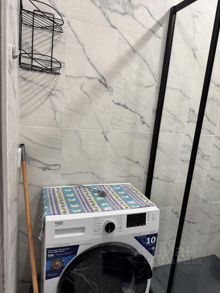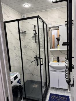 В квартире есть всё необходимое для комфортного проживания. Совмещённый санузел оборудован душевой кабиной. На кухне и в комнате установлена мебель. Из техники доступны кондиционер, холодильник и стиральная машина. Студия готова к заселению, поэтому можно сразу въезжать и жить.