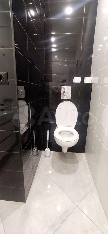 Кухня оборудована всем необходимым: холодильник, плита, духовой шкаф и вытяжка. Ванная комната совмещенная, с качественной сантехникой и стильным дизайном.