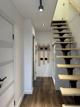 На 1 этаже расположен шкаф, кухня, обеденный стол (раскладывается на 2 человека). На 2 этаже расположен рабочий кабинет, спальное место. Есть еще свободное место для перспективного расположения мебели. Может по согласованию приобретено будущему арендатору на его вкус.