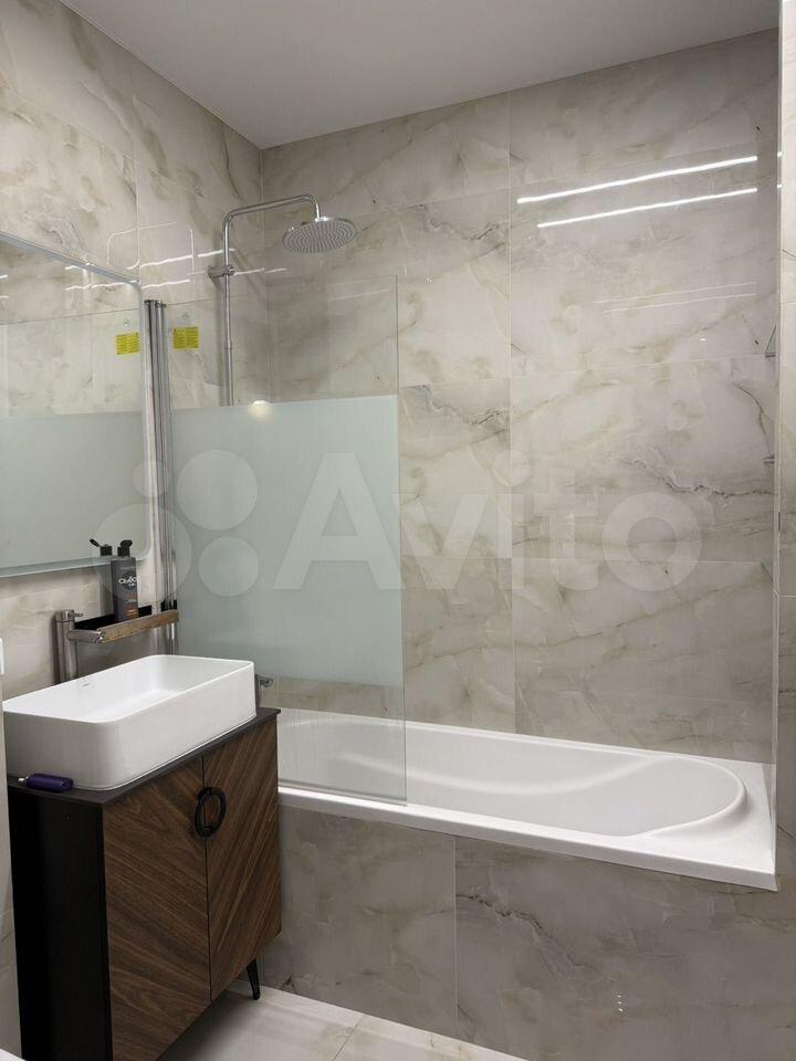Квартира с косметическим ремонтом, полностью готова к проживанию. Внутри есть всё необходимое для комфортного быта: кондиционер, холодильник, посудомоечная и стиральная машины, телевизор. На кухне и в комнате установлена современная мебель. Ванная комната оборудована ванной. Просторная кухня-гостиная площадью 20 кв. м станет отличным местом для кулинарных экспериментов и семейных обедов.