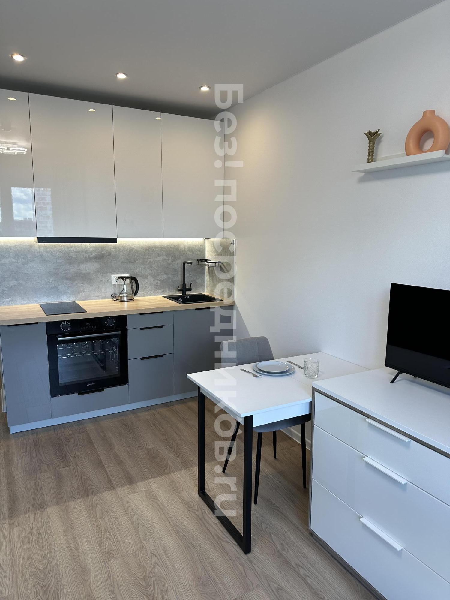 Техника: духовой шкаф, варочная панель, вытяжка, система фильтрации воды, утюг, СВЧ, полноразмерный холодильник, чайник, стиральная машина. интернет 100мб/с