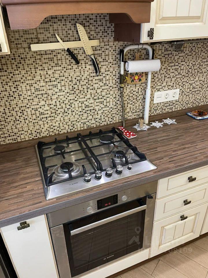 Кухня просторная и светлая, оснащена современной техникой и стильной мебелью. Из кухни выход на застекленную лоджию, где можно наслаждаться видом на городские пейзажи.