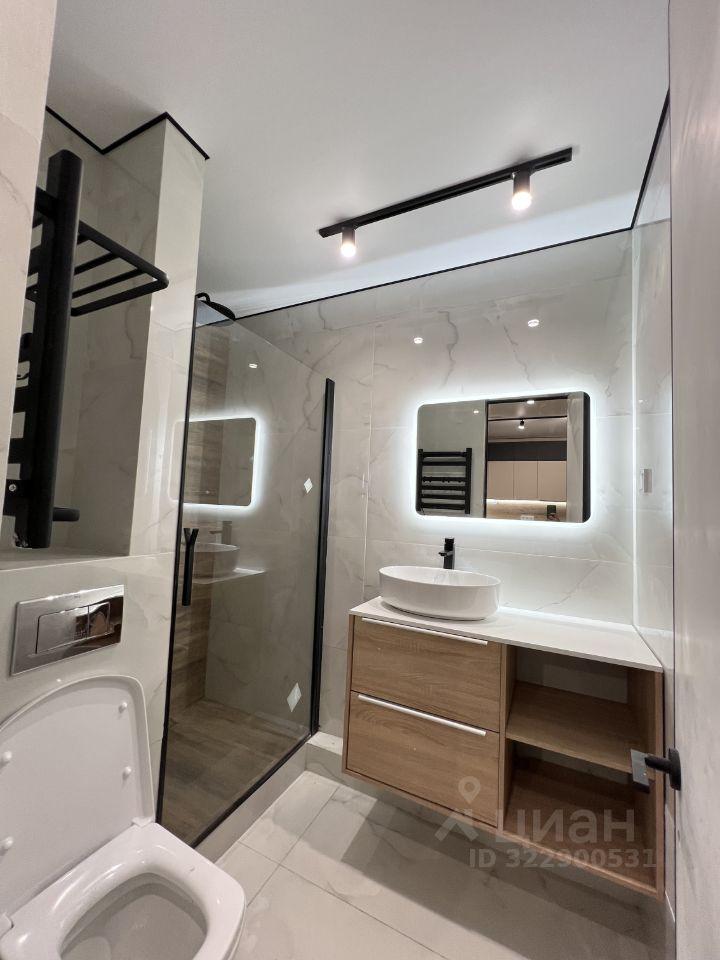 В квартире есть все необходимое для комфортного проживания: современная мебель на кухне и в комнатах, полный комплект техники, включая кондиционер, холодильник, посудомоечную и стиральную машины, а также телевизор. Особенность планировки — два совмещенных санузла, один из которых с ванной, а другой с душевой кабиной. Окна выходят во двор, поэтому в квартире тихо и уютно.