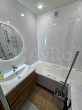 В квартире сделан свежий евроремонт. Комната светлая и просторная, с мебелью, в которую входят удобные диван и шкаф для хранения вещей. Кухня большая, 18.9 кв. м, оборудована всей необходимой мебелью и техникой: холодильник, кондиционер, телевизор , микроволновая печь, стиральная машина. Совмещенный санузел с ванной. Имеется балкон для отдыха и хранения сезонных вещей. Подключен интернет, что отлично подходит для удаленной работы или учебы.