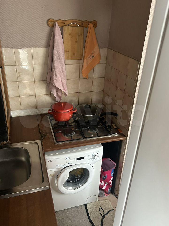 В комнате установлен вместительный шкаф-купе и удобный диван. Из мебели также имеется обеденный стол и стулья. В кухне современная бытовая техника: холодильник, варочная панель, духовой шкаф и стиральная машина. Санузел раздельный, оборудован ванной и стиральной машиной.