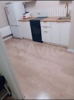 В комнатах на полу-ламинат, на кухне и в ванной плитка (полы с подогревом)