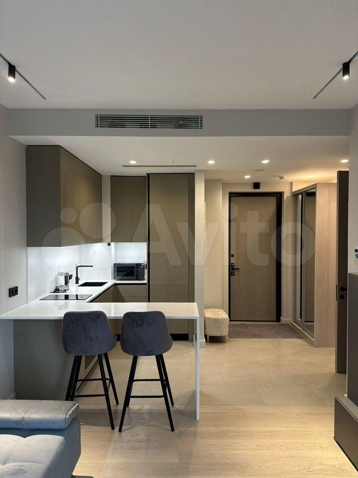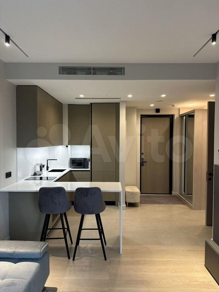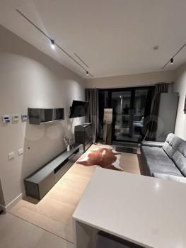 Сдается стильная однокомнатная квартира с дизайнерским ремонтом в современном жилом комплексе, расположенном по адресу: Россия, Москва, 2-я Хуторская улица, 34. Общая площадь квартиры — 32,3 кв. м, жилая площадь — 14 кв. м, просторная кухня — 16 кв. м. Квартира находится на 31 этаже 36-этажного дома, построенного в 2024 году. Из окон открывается захватывающий вид на городскую улицу.