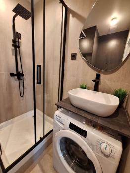 — Современный санузел, стиральная машина