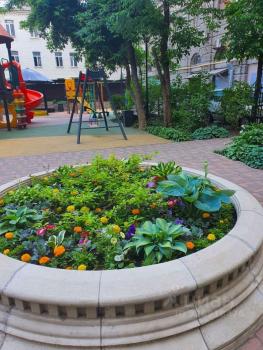 • Закрытый камерный двор с цветами, шлагбаум