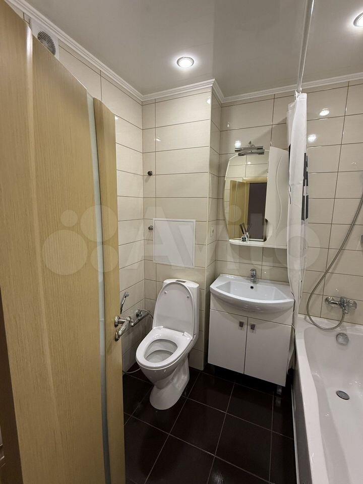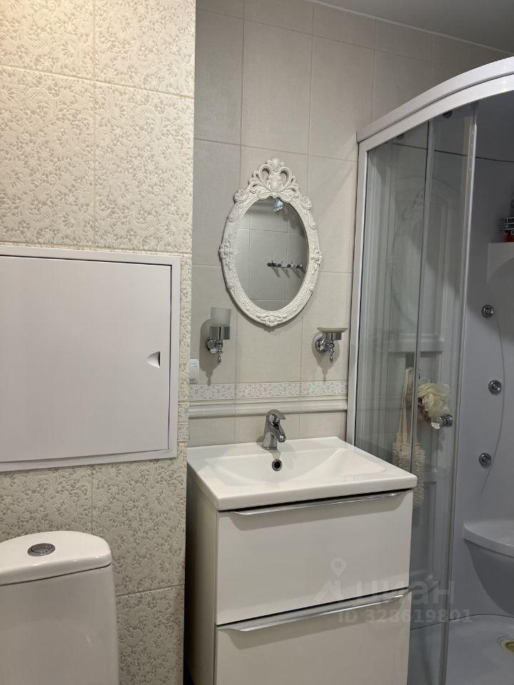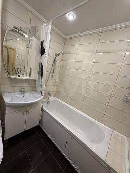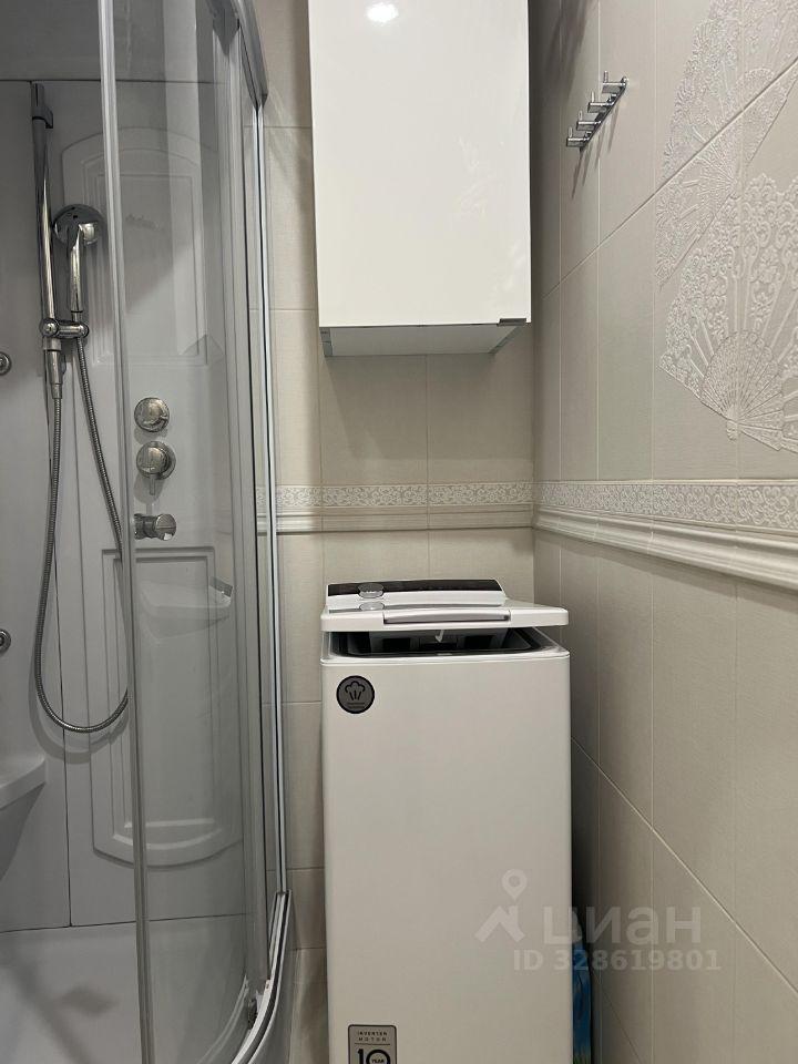 Светлая квартира с совмещённым санузлом и современной душевой кабиной.