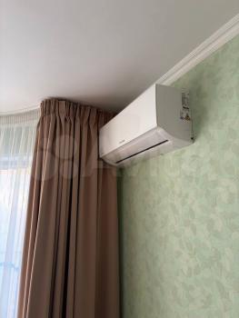 В квартире сделан косметический ремонт, есть вся необходимая мебель как на кухне, так и в комнате. Из техники — кондиционер, холодильник, телевизор, посудомоечная и стиральная машины. Санузел совмещенный, в ванной комнате установлена ванна. Окна выходят во двор, поэтому в квартире тихо и спокойно.