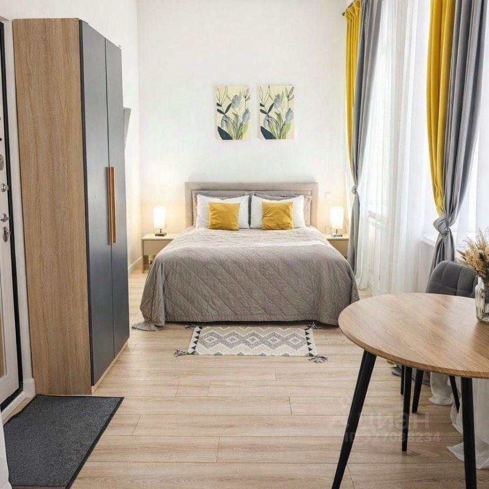 просторная студия с отдельными зонами для спальни и кухни