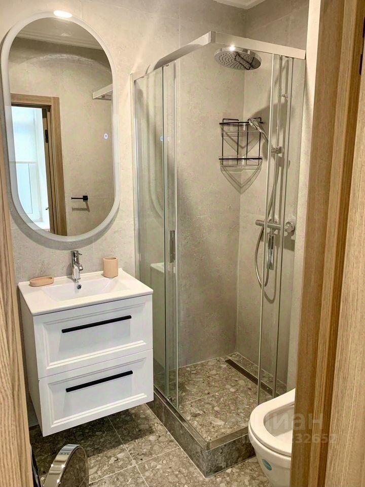 Теплый пол, большая душевая кабина, санитарный душ — все продумано до деталей.