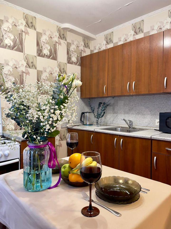 В квартире есть все необходимое для комфортного проживания. Просторная кухня оборудована всей необходимой техникой. В комнате мебель фирмы Аскона, кондиционер Тошиба, телевизор Самсунг.