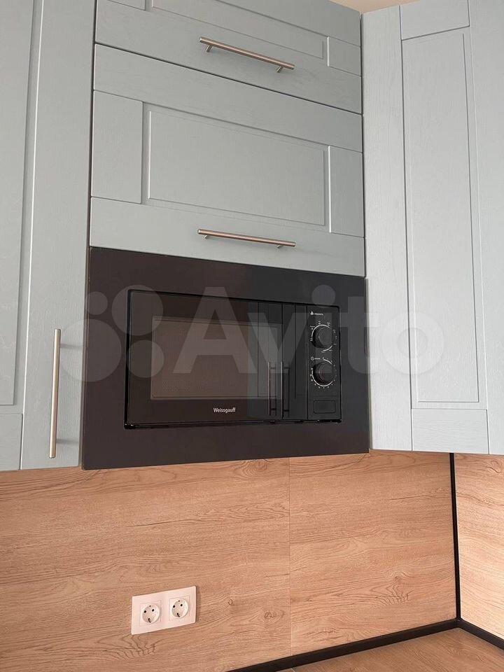 Бытовая техника: стиральная и посудомоечная машины, встроенный холодильник, индукционная варочная панель, духовой шкаф, вытяжка с угольным фильтром, микроволновая печь, чайник, кондиционер, телевизор.