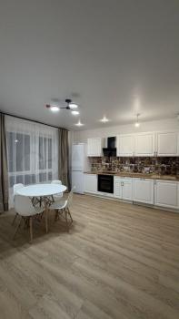 В квартире имеется раскладывающийся диван с ящиком для хранения белья, два шкафа для вещей, холодильник, новый качественный кухонный гарнитур с варочной панелью, новый стол и стулья, новая мебель в прихожей, новый и полностью укомплектованный санузел: раковина, стиральная машина, душевая кабина, шкафчик, батарея для полотенец.