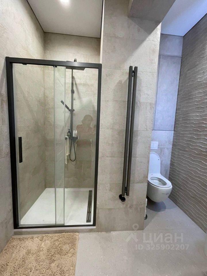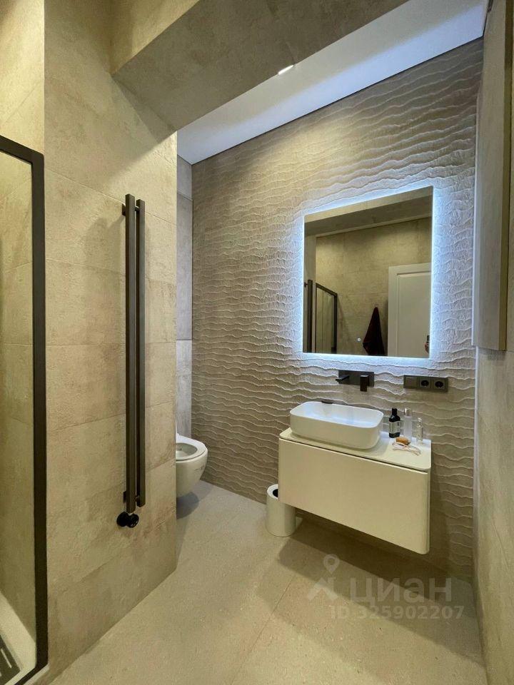 Санузeл совмещенный, оборудован ванной и стиральной машиной. Из окон открывается приятный вид на городские огни. Лоджия застеклена, что позволяет использовать ее как дополнительное пространство.