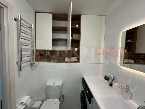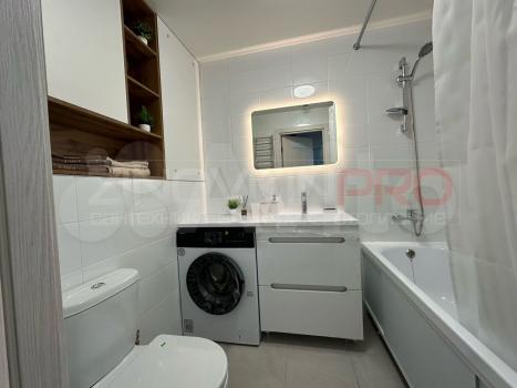 Квартира с дизайнерским ремонтом, полностью готова для комфортного проживания. Просторная кухня площадью 18 кв. м оснащена всей необходимой техникой: холодильник, посудомоечная машина и стиральная машина. В комнате и на кухне есть мебель, поэтому можно сразу заезжать и жить. Ванная комната оборудована современной душевой кабиной. Для удобства в квартире установлен кондиционер.