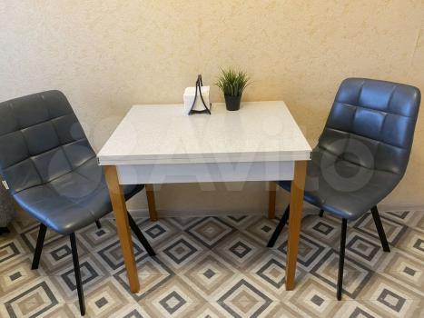 Кухня - гостиная с большим раскладным диваном. Вторая комната с полуторной кроватью и рабочим местом. По желанию можно поставить еще новый двустворчатый шкаф во второй комнате. Надежная дверь с усиленным замком, отдельный тамбур, очень хорошие соседи.