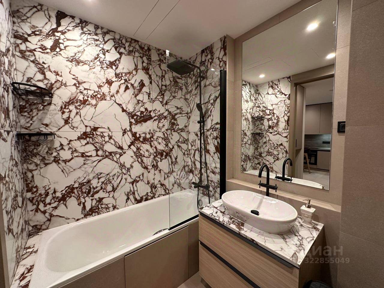 В квартире есть все необходимое для комфортного проживания: современная мебель на кухне и в комнатах, полный комплект техники, включая кондиционер, холодильник, посудомоечную и стиральную машины, а также телевизор. Особенность планировки — два совмещенных санузла, один из которых с ванной, а другой с душевой кабиной. Окна выходят во двор, поэтому в квартире тихо и уютно.