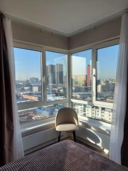 Сдается уютная студия площадью 24 кв.м на последнем, 33-м этаже современного дома. Квартира расположена в шаговой доступности от метро — всего 9 минут пешком. Из окон открывается вид на улицу, 33 этаж, вид потрясающий, особенно ночью!