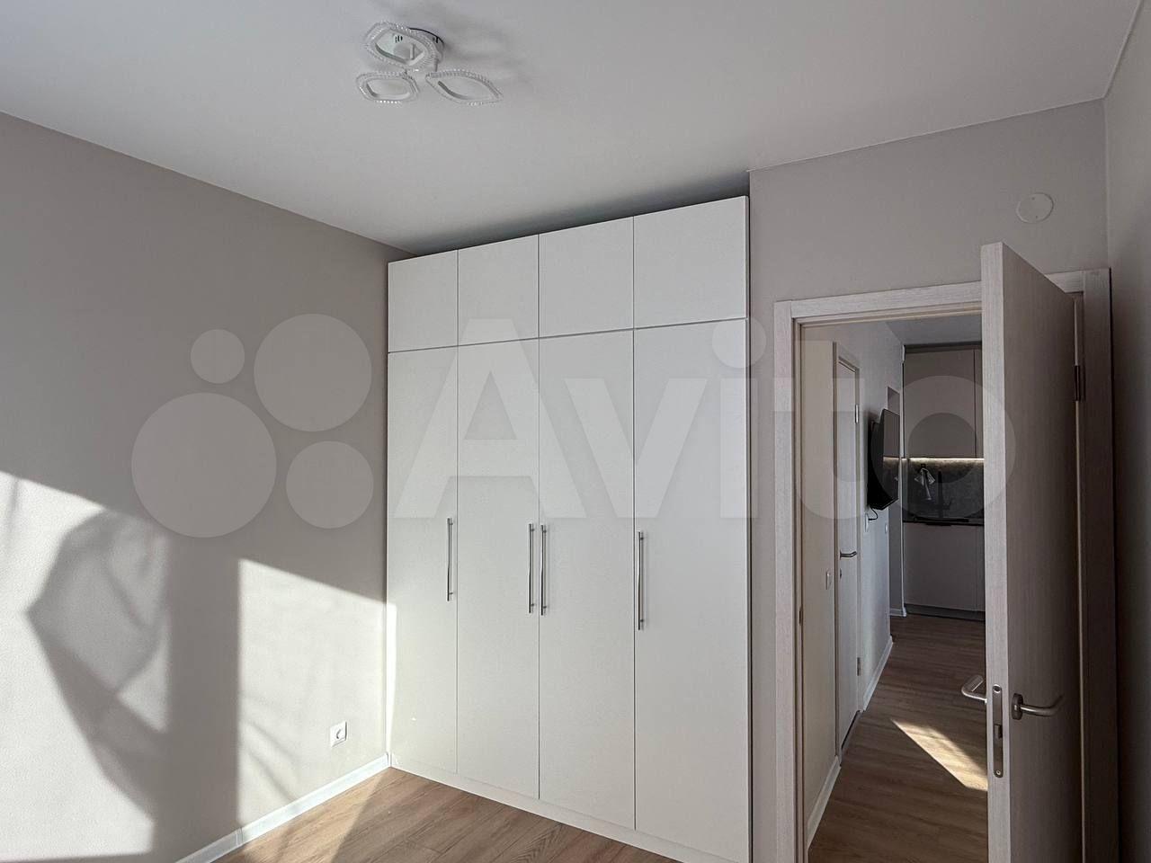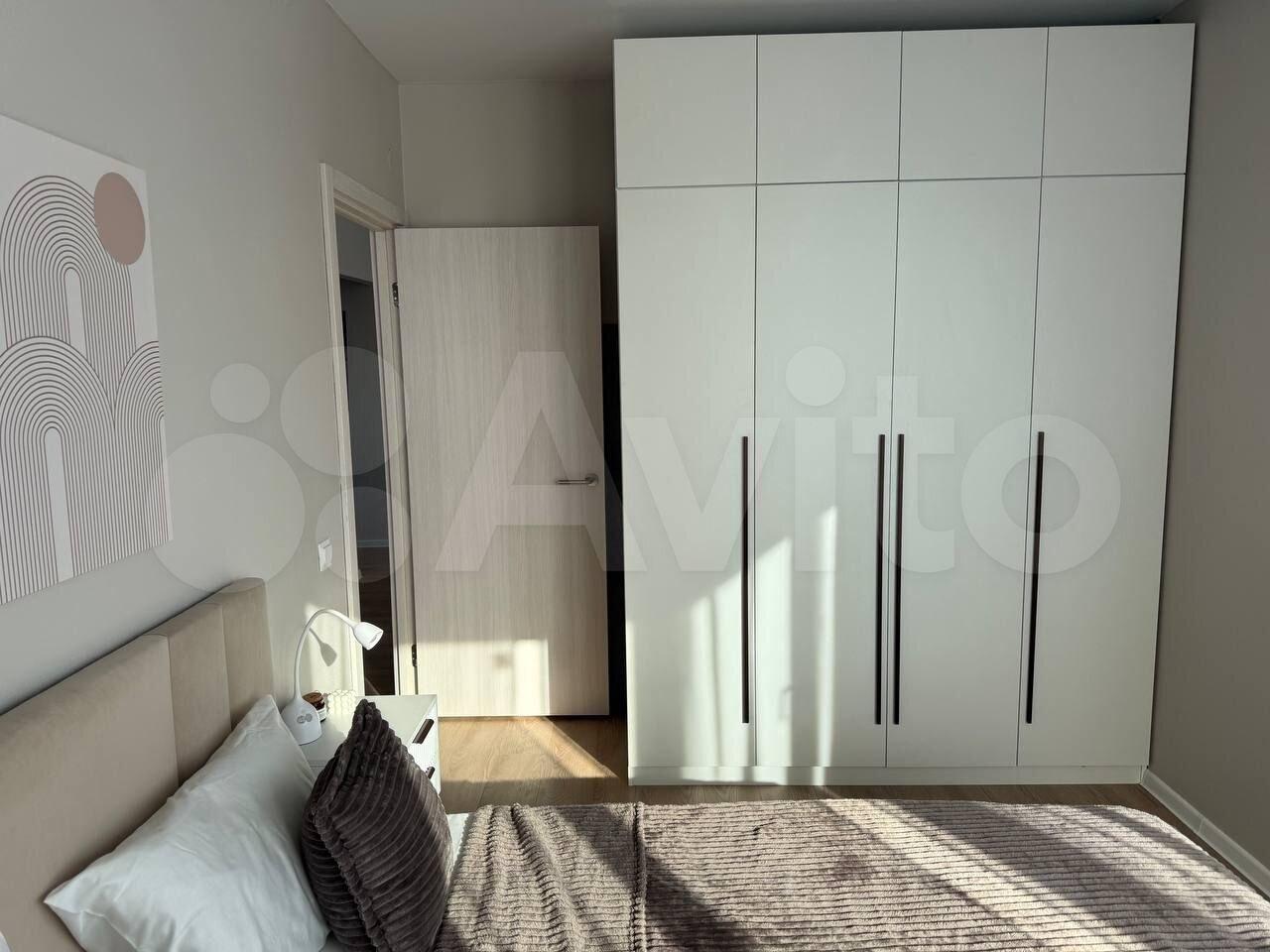 Комната светлая и чистая, есть необходимая мебель и места для хранения. В квартире есть всё для комфортного проживания: стиральная машина, холодильник, кухня, интернет.