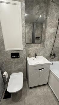 В квартире есть всё необходимое для комфортного проживания. Современный ремонт, удобная мебель и вся необходимая техника, включая стиральную машину и холодильник, посудомоечную машину. Планировка студии позволяет эффективно использовать пространство, а санузел оборудован современной сантехникой.