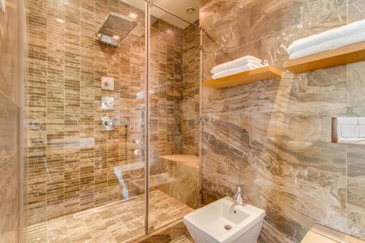 Cанузeл оборудован душевой кабиной. Дорогая и качественная сантехника.