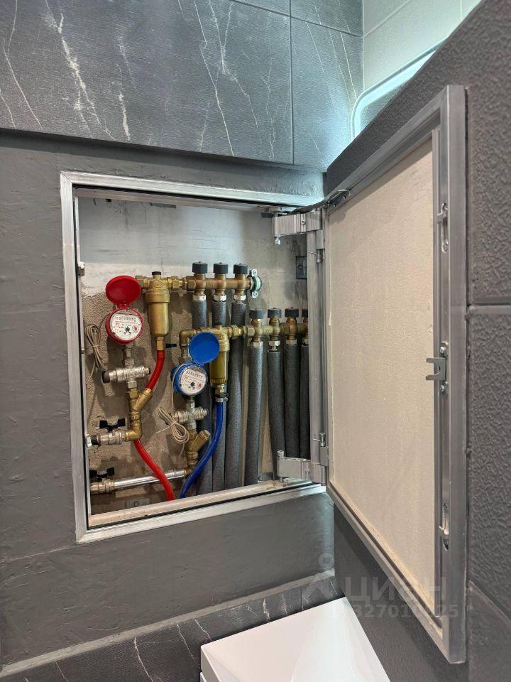 Квартира оборудована системой датчиков протечки с автоматическими запорными кранами. Защита от аварийных ситуаций.