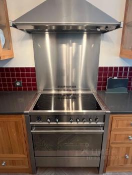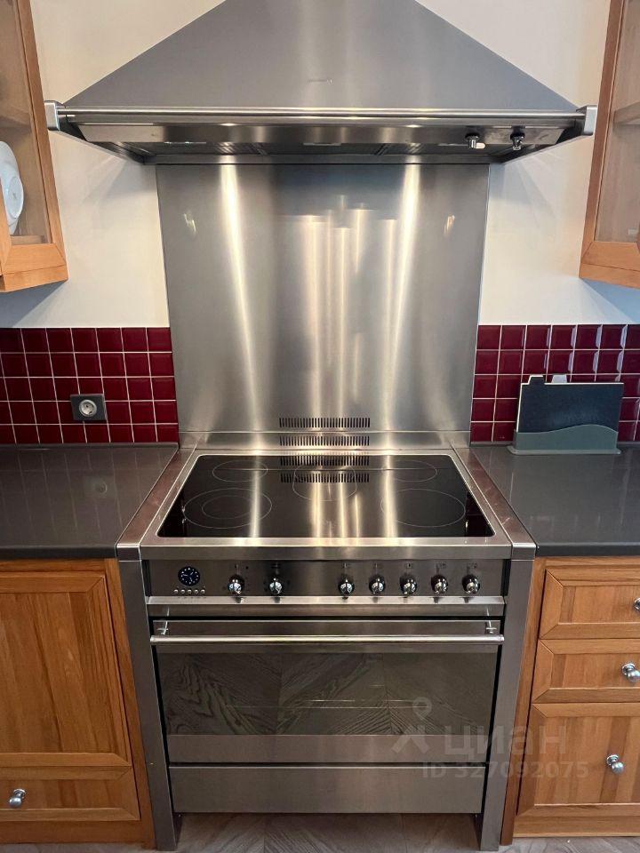 Установлена профессиональная напольная плита Smeg с духовкой и шестью конфорками. Техника Siemens и Liebherr.