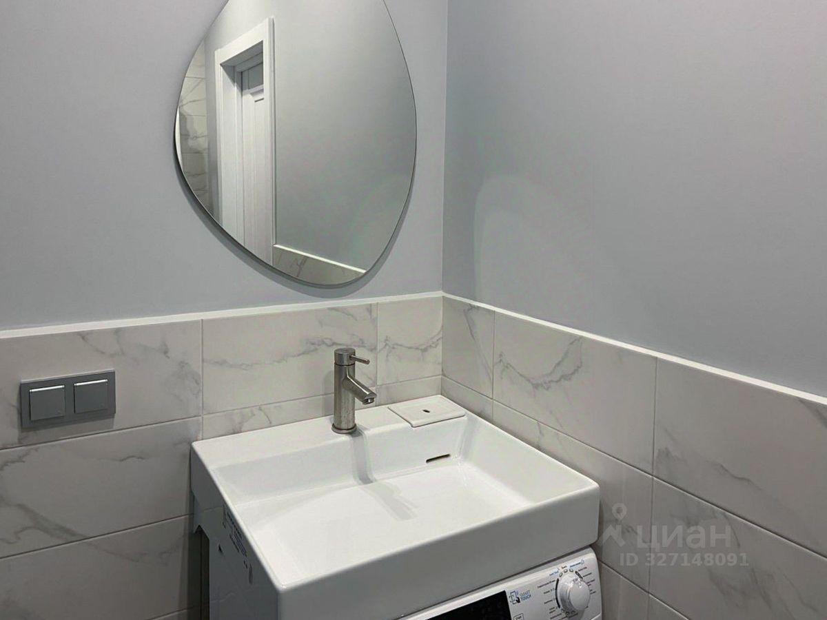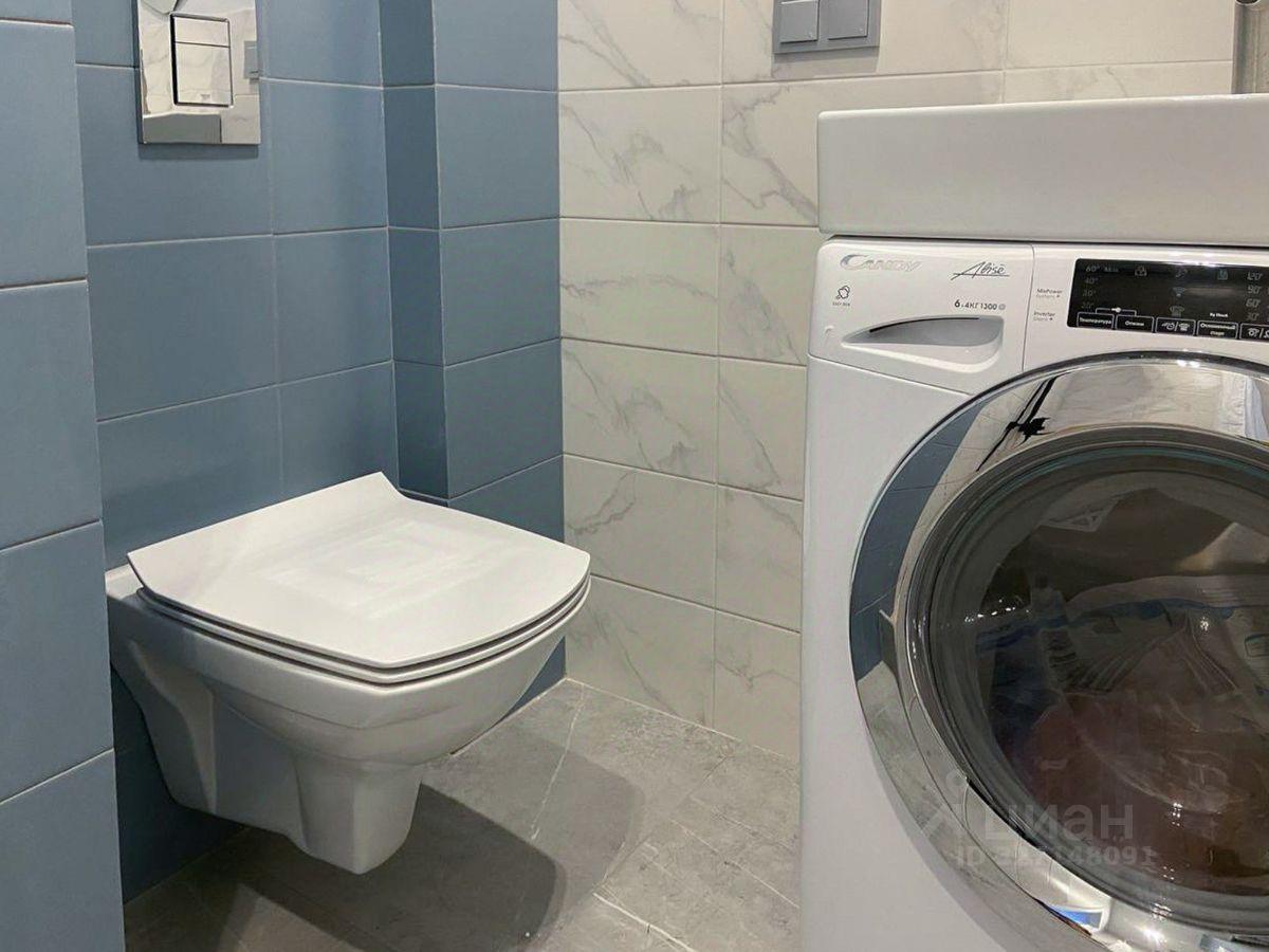 В ванной установлена стиральная машина.