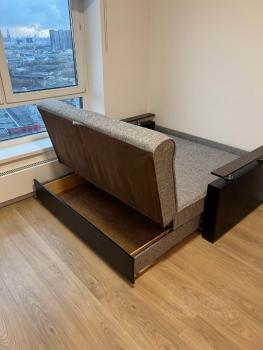В комнатах установлена современная мебель: вместительные шкафы, удобный диван и кровать с дополнительной системой хранения вещей.