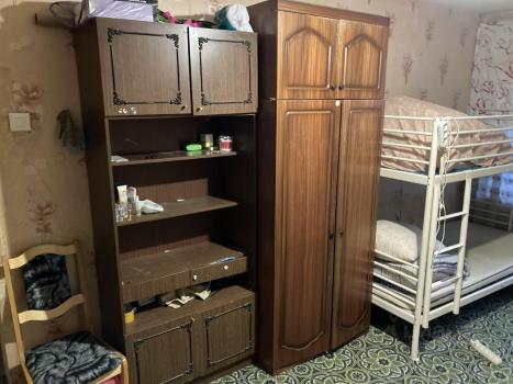 Внутри выполнен косметический ремонт. В наличии вся необходимая мебель: шкафы, диван, письменный стол и стулья. Для вашего удобства имеется кабельное/цифровое ТВ.