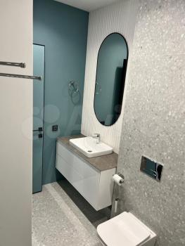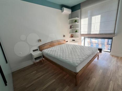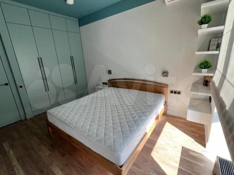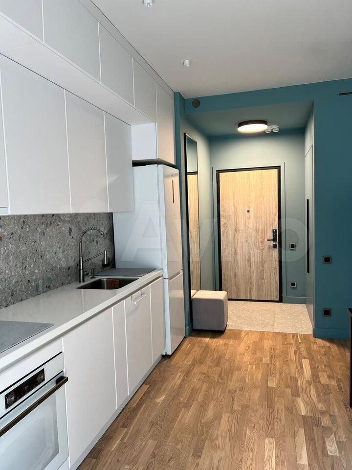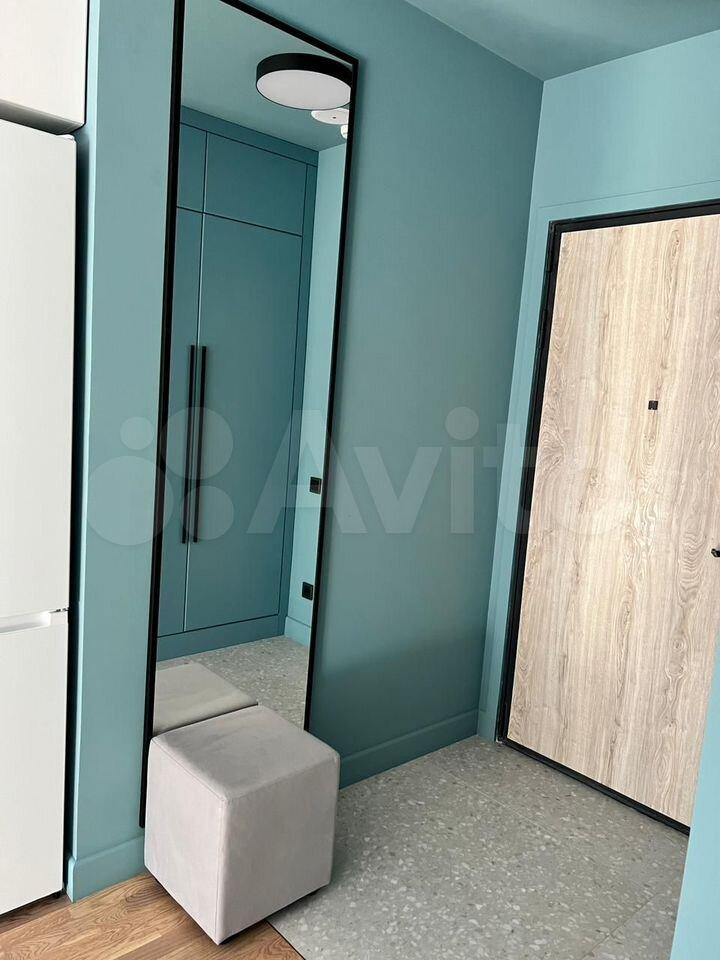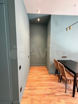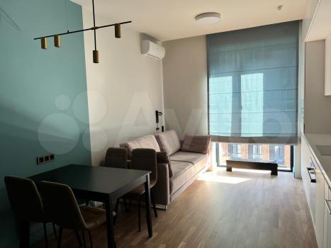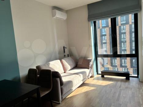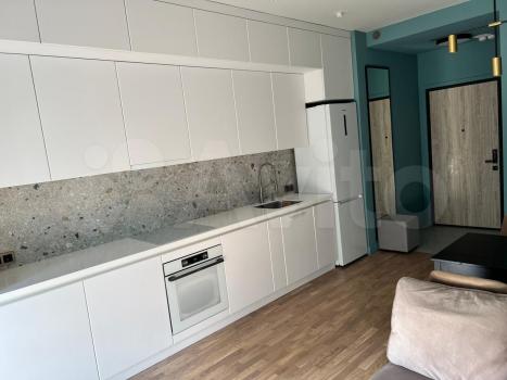 Студия с дизайнерским ремонтом, где каждая деталь продумана до мелочей. В квартире есть всё необходимое для комфортного проживания: встроенная мебель на кухне и в комнате, современная техника — кондиционер, холодильник, телевизор и стиральная машина. Ванная комната оборудована душевой кабиной. На лоджии можно устроить зону отдыха или рабочее место.