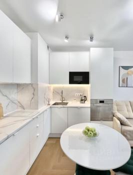 В квартире выполнен дизайнерский ремонт, а её планировка включает просторную кухню-гостиную площадью. Все необходимое для комфортного проживания уже есть: кондиционер, холодильник, посудомоечная и стиральная машины, телевизор. Санузел совмещенный, оборудован ванной. Окна выходят на улицу, что обеспечивает много естественного света.