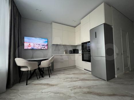 В квартире есть все необходимое для комфортной жизни: современная мебель на кухне и в комнате (кровать с ортопедическим матрасом и подъемным механизмом, диван раскладывается), а также полный набор техники — кондиционер, холодильник, кухонная вытяжка, микроволновая печь, индукционная варочная панель, духовой шкаф, посудомоечная машина, телевизор и стиральная машина.