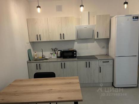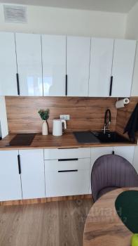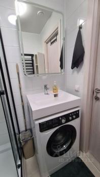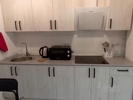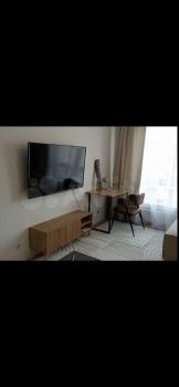 Студия полностью меблирована: кухонный гарнитур, кровать 140на200, холодильник, телевизор, сплит-система, стиральная машина с сушкой.