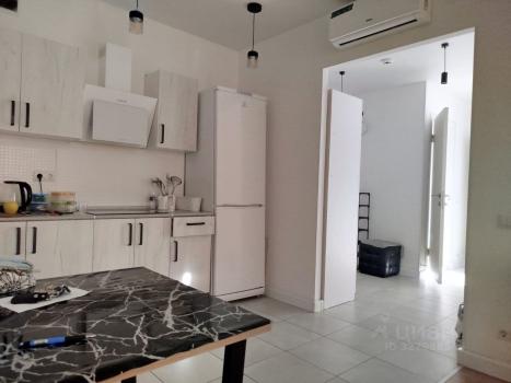 В квартире сделан дизайнерский ремонт, который создаёт уютную и современную атмосферу. Студия полностью меблирована и оснащена всей необходимой техникой: холодильником, духовым шкафом, телевизором и стиральной машиной. Планировка открытая и функциональная, а окна выходят во двор, поэтому в квартире всегда тихо и спокойно. Ванная комната оборудована удобной ванной.