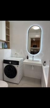 В санузле столешница из искусственного камня, зеркало с регулируемой подсветкой.