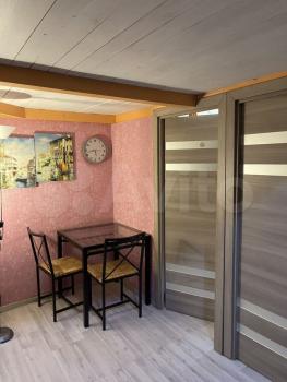 Из кухни есть второй выход во двор, во дворе есть парковка со шлагбаумом и мусорные баки. На проезжей части одна полоса движения, воздух чистый, тихо. Комната для одной девушки.