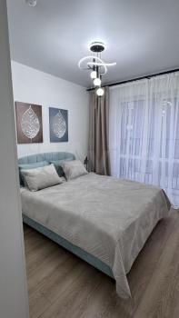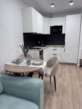 Впервые сдается светлая квартира с большой кухней-гостиной. Вся техника (стиральная машина, холодильник, духовка, микроволновка, варочная панель) и мебель новые. Имеется все для комфортного проживания 1 человека или семьи. В квартире 2 спальных места - в спальне большая двухспальная кровать 180/200, в гостинной диван - 200/140. Большой вместительный шкаф для хранения вещей.