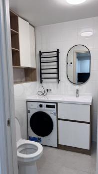 2-ой Санузел: Полы с подогревом, зеркало с подсветкой, умывальник со шкафчиком внизу, унитаз встроенный, все необходимое для влажной уборки квартиры.