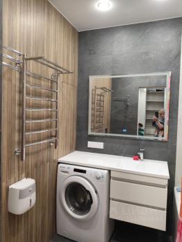 Квартира с дизайнерским ремонтом, который подчеркивает современный стиль и комфорт. Здесь есть все необходимое для жизни: на кухне и в комнате установлена мебель, есть холодильник, телевизор и стиральная машина. Санузел совмещенный, оборудован душевой кабиной. Высота потолков 2.6 метра добавляет пространству воздуха и света.