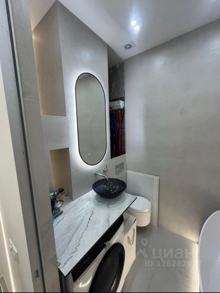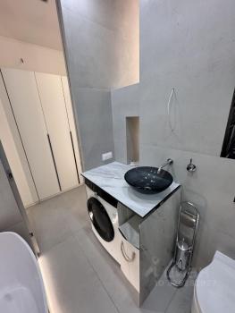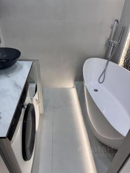 Теплый пол, большая душевая кабина, санитарный душ — все продумано до деталей.