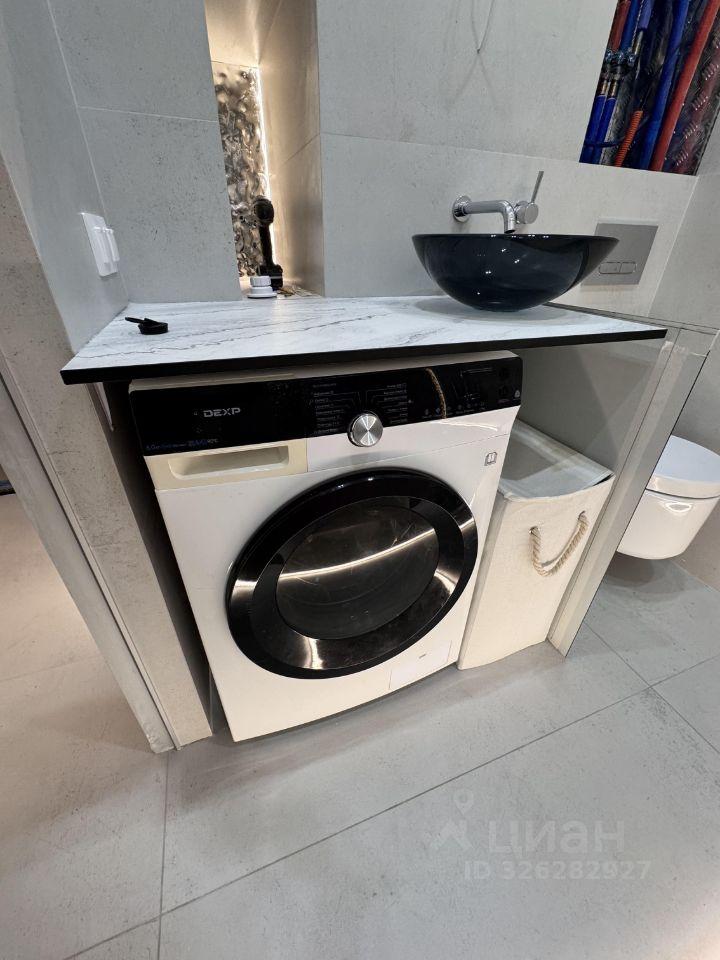 Кондиционер, двуспальная кровать с подъемным механизмом и местом хранения, шкаф с антресолями, стол-трансформер, стиральная машина с сушкой.