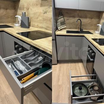 В зоне кухни - мебельный гарнитур со встроенной индукционной плитой, микроволновкой, вытяжкой.